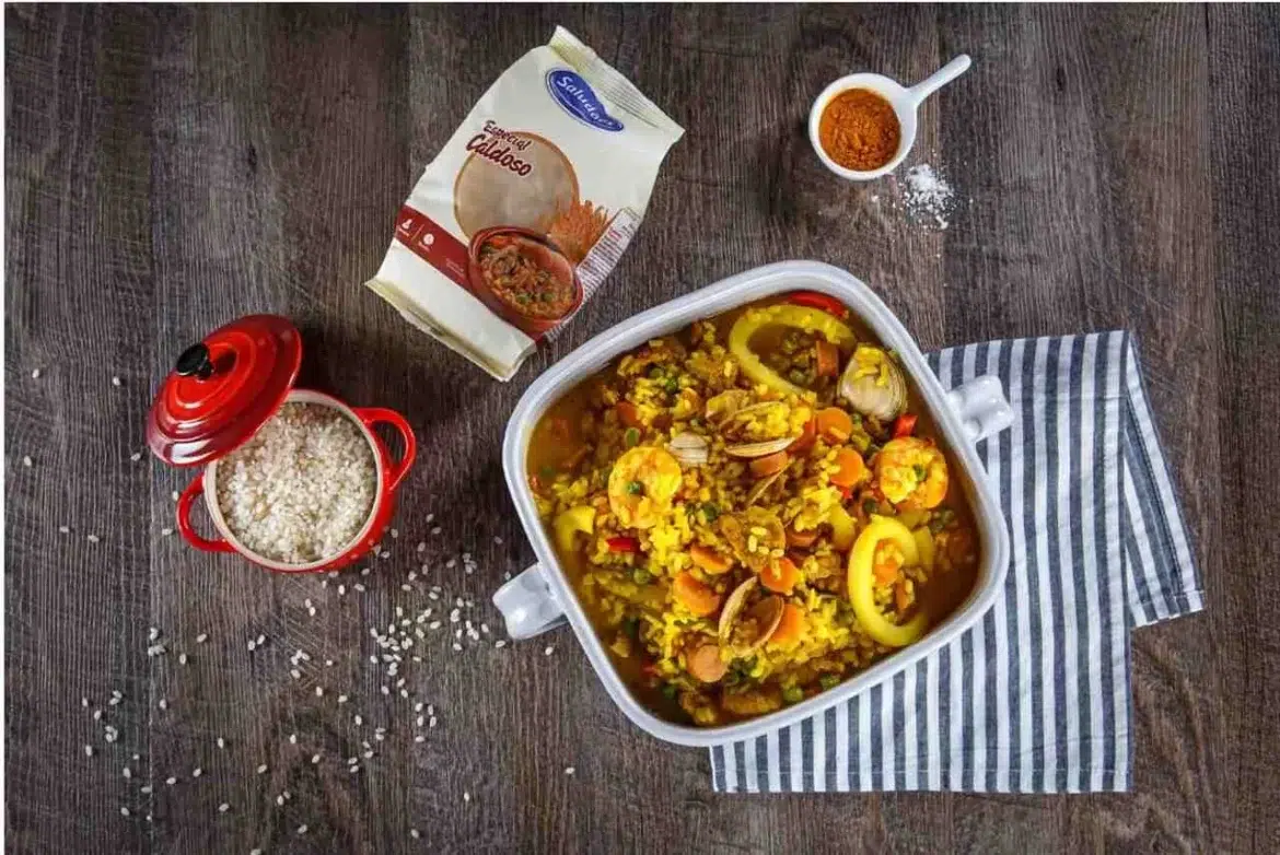 - Arroz Bomba: Um tipo de arroz de grão curto, conhecido por sua capacidade de absorver líquido sem perder a textura firme. É a base perfeita para o Arroz à Valenciana.